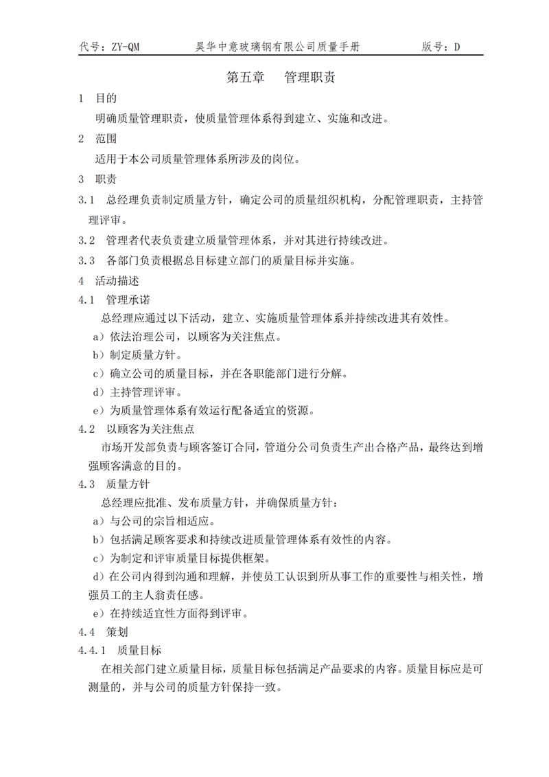 > 质量手册